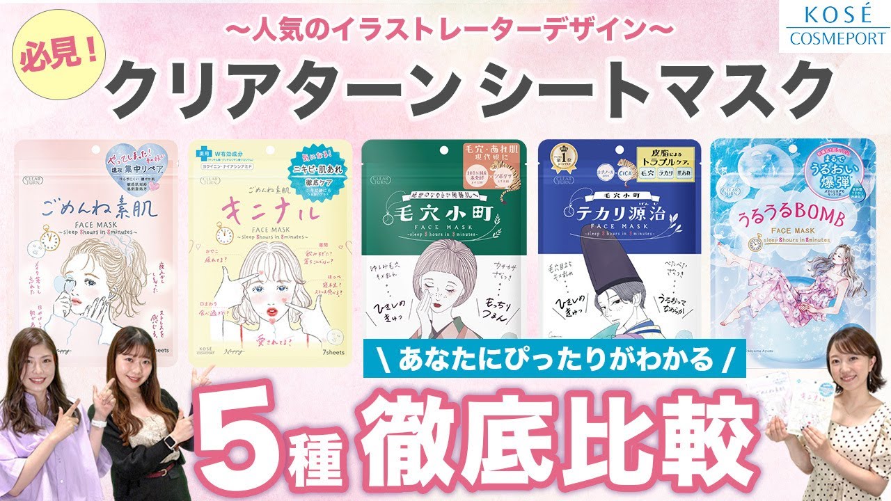 クリアターンの基本商品は、シートマスクを中心に肌悩み別に展開。主なシリーズはイラストレーターコラボ、大容量、ビタプルなど。各シリーズの基本商品を以下に詳述します。