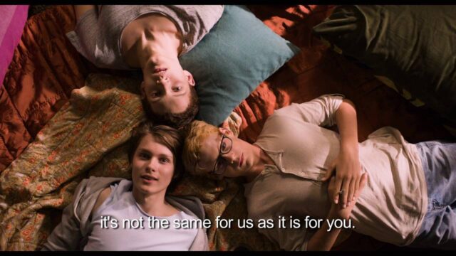 母親のキム(Robin Bain)がセックスワーカーとして働く様子が描かれ、ヌードやセックス場面が暗示されます。シャラが母親の影響でオンラインに露出度の高い写真を投稿するよう圧力をかけられる部分です。ヌードとして、シャラのトップレス姿が複数回登場し、胸が露わになる描写があります。このシーンは児童ポルノの撮影を連想させるもので、物語のテーマである性搾取を象徴します。全体として、性的シーンが5-10分ごとに発生する頻度の高さを示しています。