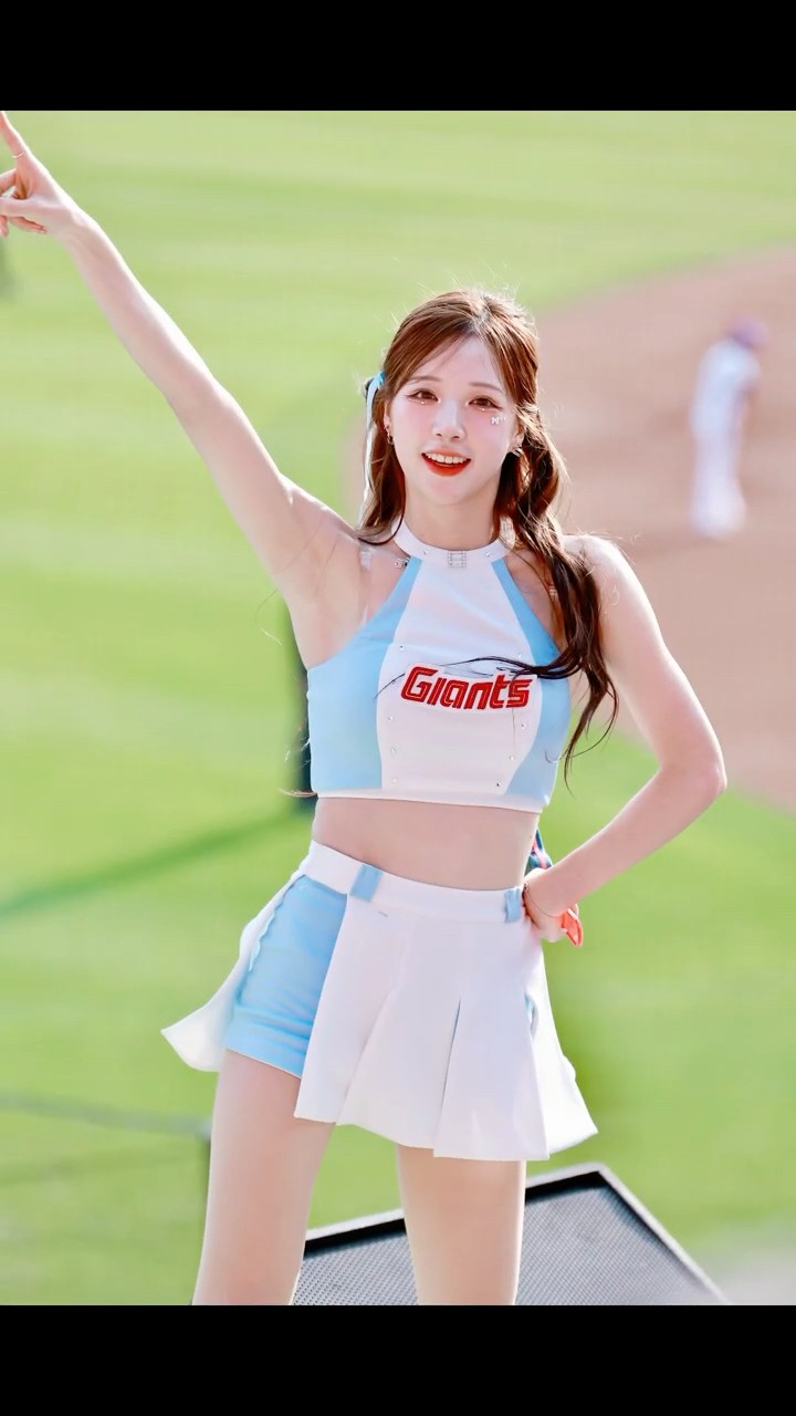 2023年には、彼女の故郷である釜山を拠点とする「釜山ロッテジャイアンツ」のチアリーダーとして活動を開始。この時期、彼女は「釜山の女神」として地元ファンから絶大な支持を受け、韓国国内での人気をさらに確固たるものにしました。同年、台湾プロ野球チーム「楽天モンキーズ」が開催したテーマ日「Korea Party」に招待され、台湾のファンとも交流。これがきっかけとなり、彼女の名は台湾でも知られるようになりました。