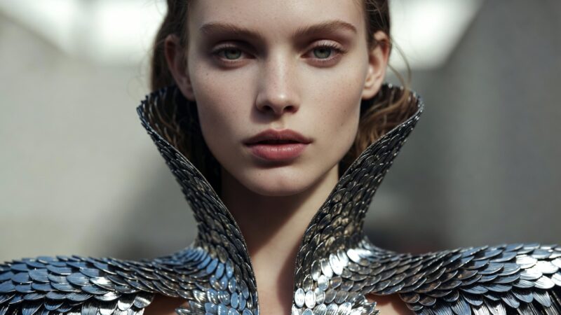 ブランドでは、バレンシアガがメタリックを積極的に取り入れています。アメリア・グレイが着用したチェーンメールドレスは、クチュールらしい洗練されたデザインです。パコ・ラバンヌは1960年代からメタリックのパイオニアで、ツイギーやブリジット・バルドーが着用した金属ドレスが有名です。現代では、バルマンやヴェルサーチがメタリックコレクションを展開し、力強いシルエットを提案しています。