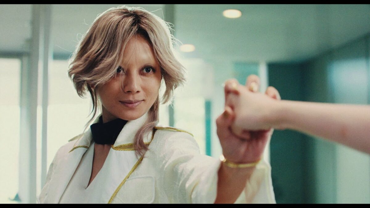 化粧面では、眉なしメイクが最大の特徴です。通常のOLメイクとは異なり、眉を完全に剃り落としたような大胆なフェイスデザインで、目元を強調したスモーキーアイシャドウと赤いリップが際立ちます。この眉なしスタイルは、役の「最強」さを視覚的に表現し、威圧感を高めていますが、頰にピンクのチークをふんわりと入れ、唇にはグロスを重ねることで、意外な可愛らしさを演出。ヘアメイクデザイナーの小西神士氏によるこのメイクは、撮影中も耐久性を重視し、汗に強いウォータープルーフ素材を採用しました。これにより、長時間のアクション撮影でも崩れず、キャラクターのインパクトを維持しています。