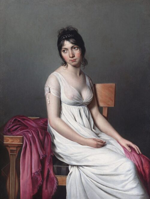 ジャック=ルイ・ダヴィッドのサークル『白い服を着た若い女性の肖像』。1798年頃。ナショナル・ギャラリー・オブ・アート所蔵。