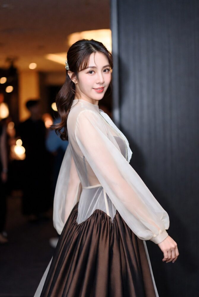 エレガントな着こなしでは、シースルードレスをパーティーで活用します。ギャザースカートと組み合わせると、素材の対比がメリハリを生みます。