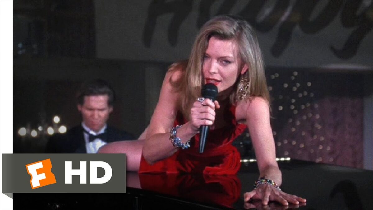 本作のヒロイン、スージー・ダイヤモンドを演じたミシェル・ファイファーは、この映画で圧倒的な存在感を示しました。彼女は女優としてだけでなく、歌手としても才能を発揮し、吹き替えなしで全曲を歌い上げています。特に、ピアノの上で「メイキン・ウーピー」を歌うシーンは、彼女の妖艶な魅力と歌唱力が際立つ名場面として広く知られています。