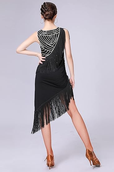 ここに紹介するZ&Xの衣装は、ラテン、サルサ、タンゴなど向けのダンス衣装。このドレスは、シーキンとフリンジをあしらった非対称デザインが特徴で、ショーツが付属しています。セクシーでエレガントなスタイルを提供し、調整可能なストラップでフィット感をカスタマイズ可能です。